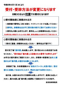 外来受診時の受付方法の変更について |