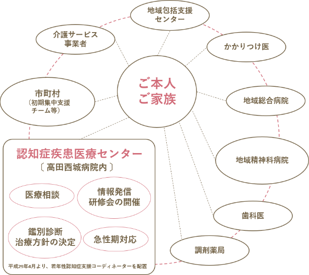 | 窓口 | 高田西城病院内 認知症疾患医療センター |